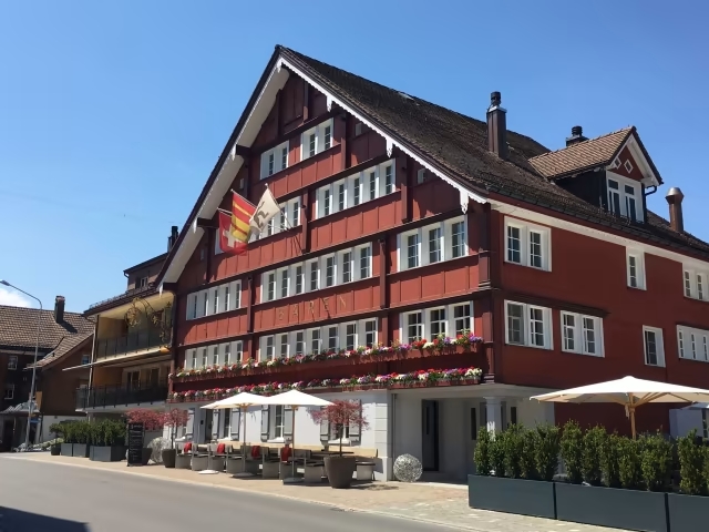 Ein Stammtisch, wie er im Buche steht. Appenzellische Urchigkeit. Heimeliges Holz. Oder auch: Bankette. Geschäftsessen. Ein Tête-à-tête Eleganz Gourmetgenuss.