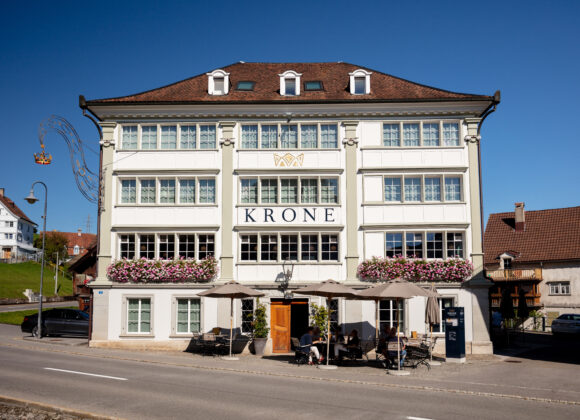 Das Hotel Krone Speicher verbindet Tradition und Offenheit: Drei Gaststuben, ein gemütliches Hotel, ein vielseitiger Seminarraum, das Kronenkaffee als Dorf-Treffpunkt und der Kronenkeller für Wein-Erlebnisse